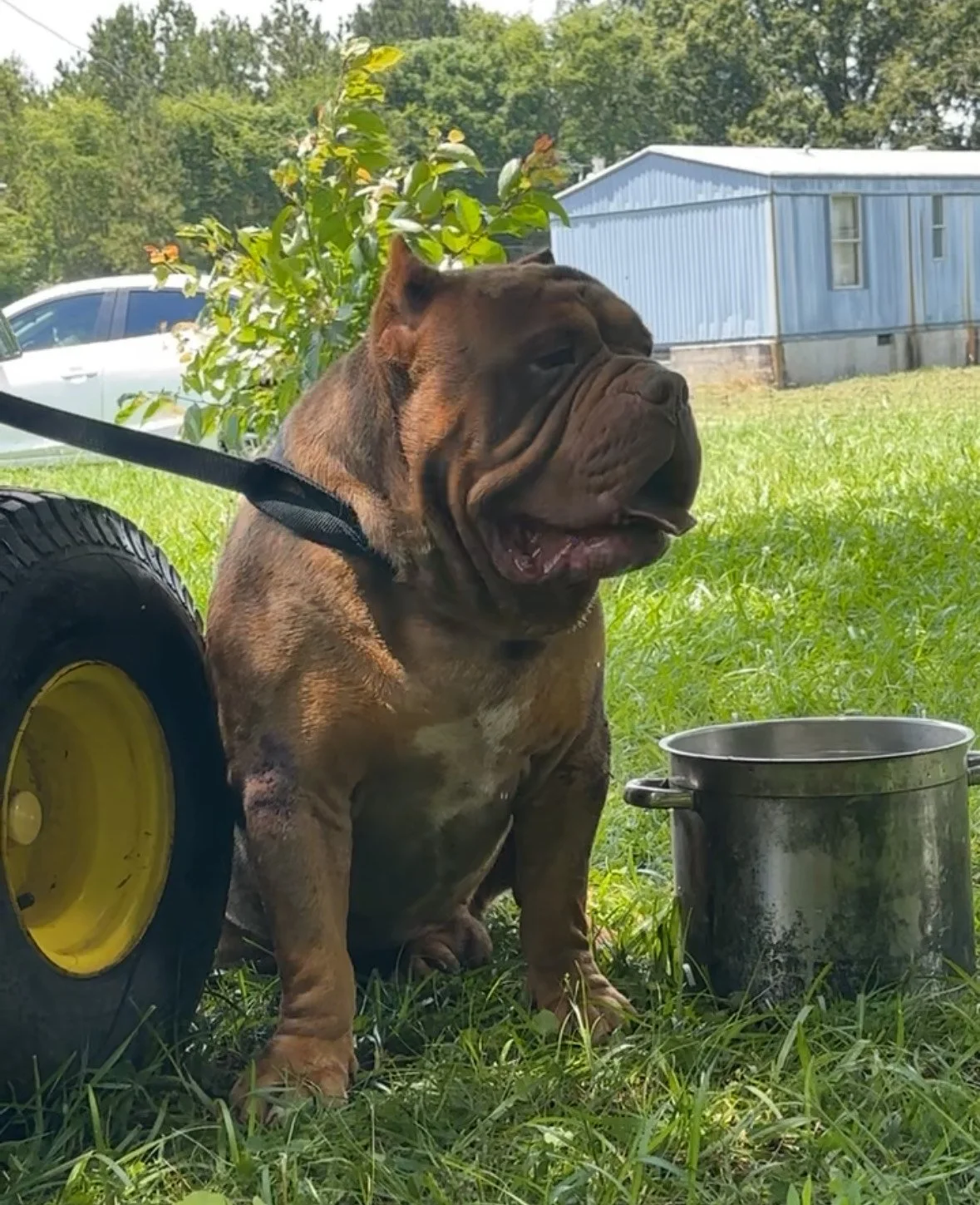 Azela is a thick-boned female with an impressive head, broad chest, and strong overall presence. A proven producer, she consistently passes on her outstanding traits. Beyond her structure, Azela is a joyful, outgoing companion with a friendly, balanced temperament—truly not a mean bone in her body.